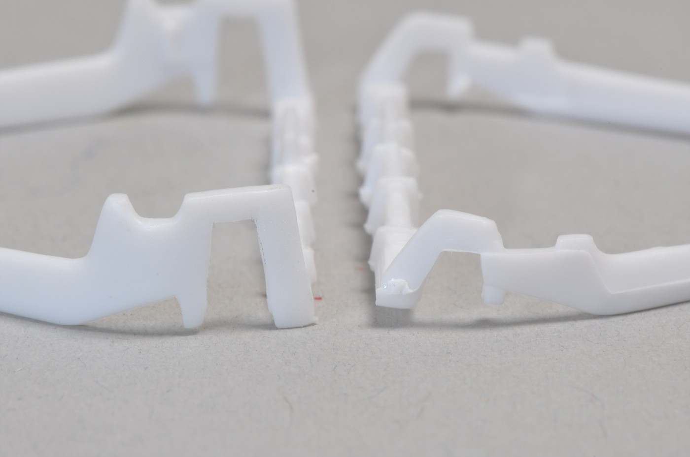 Now let's look at those new fadeaway side fenders. Here they are glued in place with white (non-styrene) glue to show you just how well they fit. I did no modifications or fitting prior to gluing them in place....